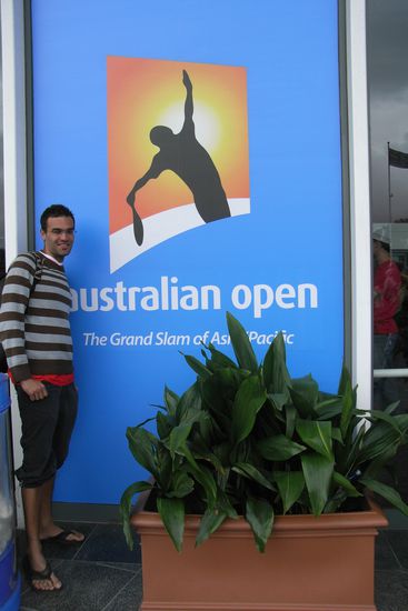 Da die diesjaehrigen Australien-Open nur ein paar hundert Kilometer von mir entfernt stattfinden, wollte ich diese nicht verpassen. So flog ich am Freitag Abend fuer 4 Tage nach Melbourne (nur 1 Stund Nationalflug; ohne Passkontrolle etc..) Vom Flugplatz nahm ich ein Taxi zum Haus einer Kollegin einer Kollegin (schreibt man doch so, oder?).Auf jeden Fall ging es eine Ewigkeit, da der Taxi-Driver wieder einmal den Weg nicht kannte, wie uebrigens alle Taxichauffeuer hier...Kleine Geschichte von Manly: Ich fuhr in der ersten Woche alleine nach Hause mit dem Taxi. Nach einer Ewigkeit fragte ich mal, wohin er eigentlich zu fahren gedenkt. Er sagte: Keine Ahnung, ich bin der Kunde, ich muss wissen wohin und im dies fortlaufend mitteilen...