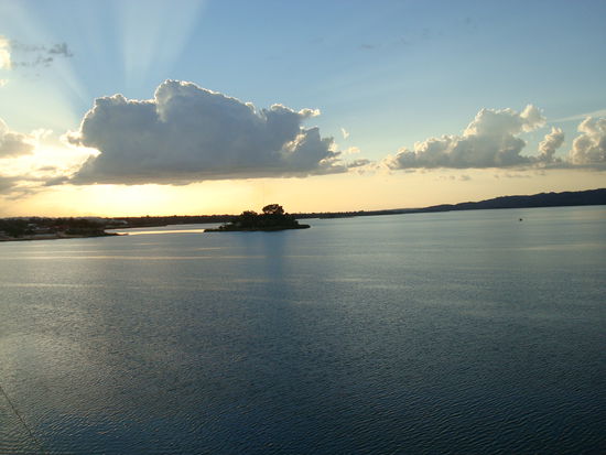 Gegen Abend kommen wir dann in Flores an. Flores ist eine kleine Inselstadt und Hauptstadt des Departementes El Petén. Die Insel liegt im Petén-Itzá-See und ist durch einen Damm mit dem Festland verbunden. Leider ist das einzige Hostel auf der Insel ausgebucht und wir muessen mit einem etwas teureren Hotel vorlieb nehmen. Zuerst nervt uns das ein bisschen, wir werden dann aber dadurch entschaedigt, dass unser Hotel direkt am See liegt indem man wunderbar baden kann und wir einen Balkon mit Seesicht haben. So beginnt unser erster Abend in Guatemala mit einem Bad im See bei Sonnenuntergang