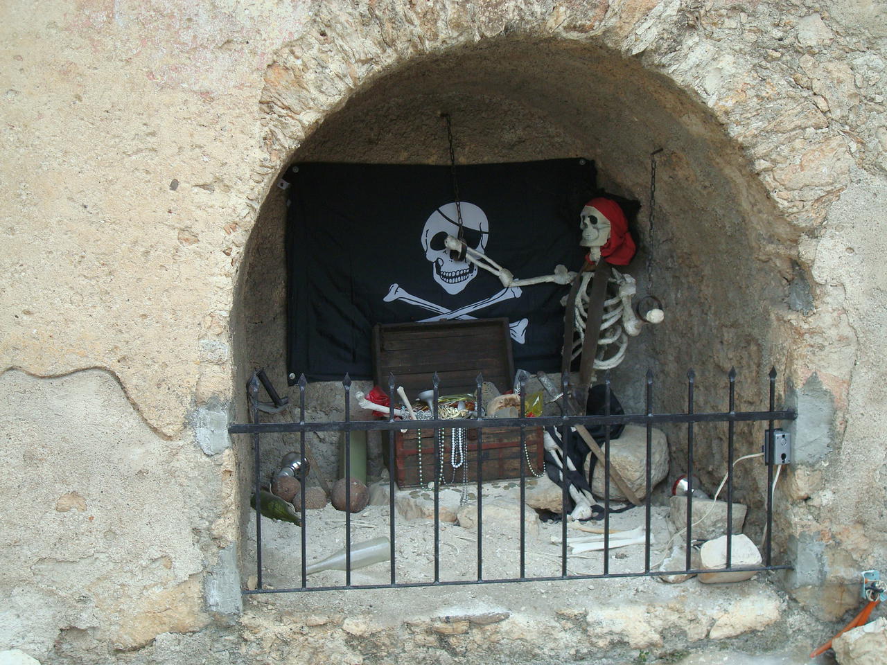 In der Festung befindet sich das Mueseo de la Cultura Maya. Hier sieht man ein Mayagrab mit Opfergaben.