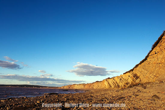 Weltbekannt durch Fossilienfunde an den Klippen hier. Was kennt ihr nicht? Nicht so schlimm. Ja hier kommt an den Klippen eben eine Steinplatte raus die ca. 300-400 Millionen Jahre alt ist. Das ist mal wirklich alter Stein. Also noch vor den Dinosauriern. In einem Fossil Interpretiv Center hab ich mich dann schlau gemacht oder besser gesagt machen lassen. Dort gab es auch einige Fossilien zu sehen und Zeichnungen wie es damals ausgesehen haben könnte. Ist schon irre. Von dieser Flora und Fauna ist im Grunde nix mehr übrig. Ein paar Tiere haben sich noch gehalten. Das sind die wirklich zähen und gut angepassten. Aber ansonsten ist davon einfach nix mehr da, Wie viele Erdperioden es schon gab und wieviele Tiere und Pflanzen. Alles verschwindet wieder. Und wir nehmen uns manchmal so furchtbar wichtig. Wir werden vielleicht auch wieder verschwinden. Lass einfach mal ein paar Millionen Jahre ins Land ziehen und dann schauen wir mal. Der Hai z. B. ist schon länger auf diesem Planeten tätig als unser eins. Die spinnen doch die Menschen. Na jedenfalls bin ich dann runter an den Strand. Mich interessiert ja sowas nicht so sehr. Also interessant find ich es schon, ich muss jetzt aber keine Fossilien bei mir rumstehen haben. Das bring mir gar nix. Trotzdem hab ich mal geschaut und bin dann von den Fossilien zu den ganz normalen Steinen gekommen. Man die waren schön hier. So bunt und kontrastreich und so viele Muster. Irre bin dann ins Fotofieber gefallen.