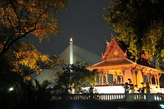 Der Königspalast und er Wat Phra Keo liegt am südlichen Ende das Sanam Luang. Der Königspalst wurde 1782 von Ayutthaya nach Bangkok verlegt. Hierführ wurde ein passende Gegend gesucht. Da das damalige Bangkok öfters mit Hochwasser zu kämpfen hatte, wurde der höchstgelegene Punkt als Standort des neuen Palastes gewählt. Die dort ansässigen Händler mussten ins heutige Chinatown weichen.