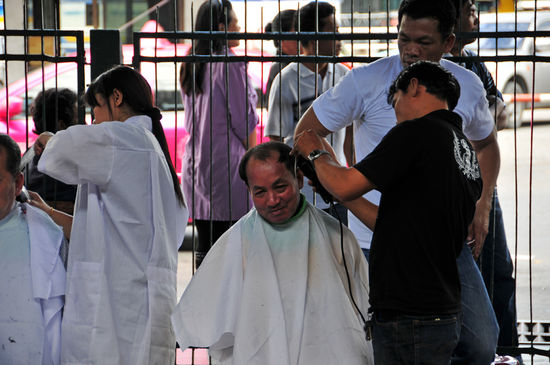 Der Tag fing für uns relativ früh an, weil wir dank der Zeitumstellung keinen Schlaf mehr fanden. So machten wir uns um 8.00 Uhr auf die Suche nach Frühstück. Tanja Entschied sich an der Garküche für eine Nudelsuppe und Christoph genoss ein Müsli mit Früchten und Joghurt, zudem teilten wir unse einen Mangoshake. So verliessen wir anschliessend das Guesthouse mit vollem Magen und fuhren mit dem Taxi zum Bahnhof Hua Lamphong. Für nicht 449 Baht (15 Franken) erstanden wir Fahrkarten nach Phitsanulok (gesprochen: Pi-sanu-loh). Wir hatten Glück und erwischten für diese 5 Stündige Zugfahrt den Special Express, ein Schnellzug welcher über Klimaanlage (Aircondition/AC) verfügt und in dem das Mittagessern serviert wird.