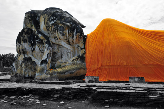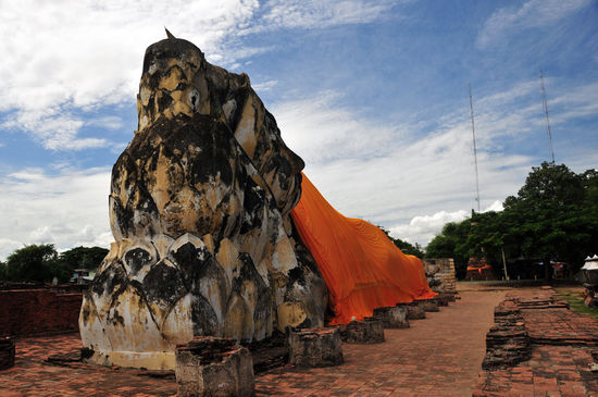 Zuerst besichtighten wir die Ruinen des Wat Lokayasutha. Hier blieb eine der grössten liegenden Buddha Figuren erhalten. Da das Kloster heute nicht mehr existiert verbringt der Buddha sein weiteres Dasein im Freien.