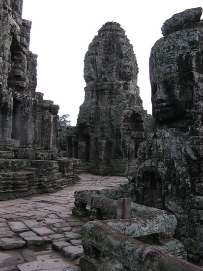 Inzwischen war es schon eine Stunde vor Dunkelwerden. Wir schafften es zwar noch in die Tempelanlage Bayon, wussten aber bereits, dass wir hier morgen noch einmal herkommen mussten. Bayon war einfach zu gross und spektakulaer, um in einer halben Stunde abgehandelt zu werden.