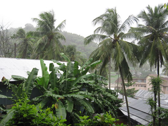 Für den nächsten Tag buchten wir in unserer Unterkunft Boottickets nach Ko Phi-Phi. Es wurde ja schliesslich mal Zeit, dass wir bei unserem mittlerweile 5. Thailandaufenthalt auch mal auf die wohl bekannteste Insel Thailands fuhren. Die Bootsfahrt war so ein bisschen der Hass, 40km lang schwankender Boden unter den Fuessen und dazu Dauerregen. Wir gingen zwar trocken von Board, schafften es allerdings nicht rechtzeitig bis zu unserer ausgesuchten Unterkunft, da mal wieder ein Platzregen runter ging.