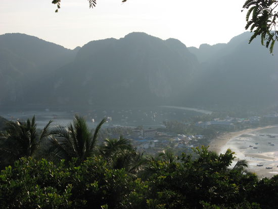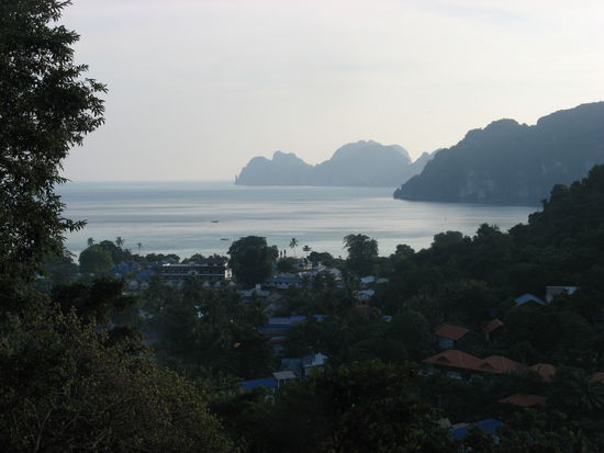 Abends machten Irene und ich noch einen kleinen Ausflug auf den Aussichtspunkt, von wo man einen schönen Blick auf die Landverbindung der beiden Inselteile hat. Am naechsten Morgen ging es dann zurück nach Krabi.