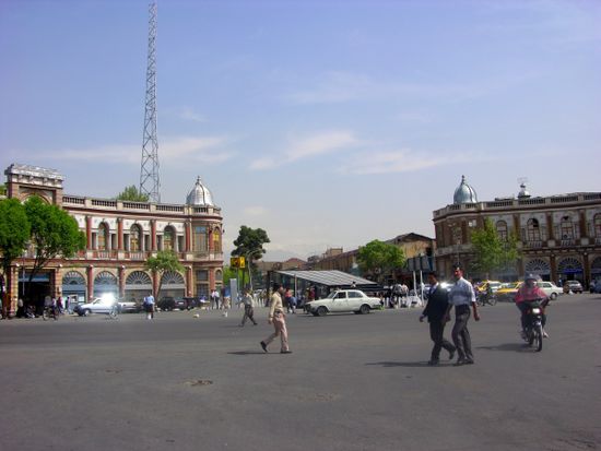 Als ich bei einem Cappuccino im netten Café de France saß, gesellte sich sogar eine hübsche Iranerin zu mir und wir unterhielten uns eine Weile über die Zustände im Land. Entgegen der im Westen verbreiteten Wahrnehmung ist der Iran, trotz der Macht der Mullahs, kein Land in dem nur bärtige Fundamentalisten und schwarze Zelte herumlaufen, ganz im Gegenteil, die meisten jungen Leute tragen Jeans und Trainers, die Jungs haben meist gegelte 80er Jahre Dave Gahan Gedächtnis Frisuren und tragen enge T-Shirts. Verschleierte Frauen sieht man auch in den anderen Städten eher selten, häufig tragen sie einen modischen, eng anliegenden Mantel, Jeans, viel Make-Up, und das Kopftuch bedeckt lediglich den Hinterkopf, damit man möglichst viel von der modische Frisur sehen kann. Außerdem kam es mir zeitweise so vor, als hätte jede zweite junge Iranerin ein Pflaster auf der Nase, Schönheitsoperationen scheinen hier der letzte Renner zu sein. Interessant fand ich auch, dass ich überall für einen Einheimischen gehalten wurde und häufig auf Farsi angeredet wurde, weshalb ich ein richtig schlechtes Gewissen hatte, dass ich kein Wort verstand. Es hatte aber natürlich den Vorteil, dass ich mich, wenn nicht gerade jemand den Weg oder die Uhrzeit wissen wollte, völlig unbehelligt bewegen konnte und in der Menge nicht als Tourist auffiel.