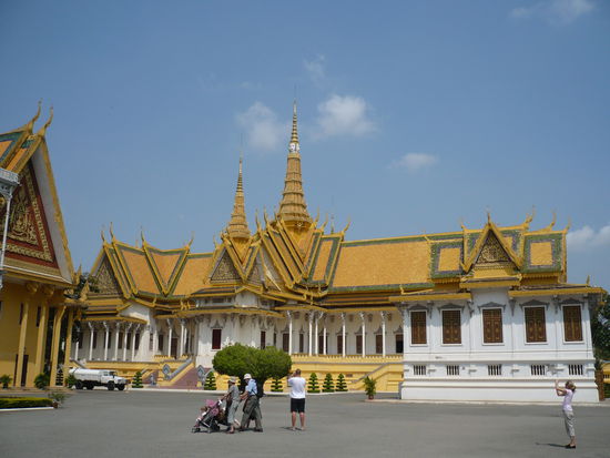 Am naechsten Tag machte ich mich dann auf, die Stadt zu erkunden. Ich wusste vorher nicht besonders viel ueber Phnom Penh, lediglich dass es waehrend der Herrschaft der Roten Khmer in der 70er Jahren quasi eine Geisterstadt war und damals viel zerstoert wurde. Die Stadt hat aber doch noch einige schoene Kolonialbauten und eine wunderschoene Palastanlage, die parkaehnlich mit vielen sehenswehrten Nebengebaeuden, viel Gruen und einer tollen Tempelanlage gestaltet ist.