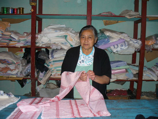 Für meinen neuen grossen Stubentisch brauchte ich ein Tischtuch. Ein guter Grund, die Weberei zu besuchen, wo ich schon früher schöne Tischtücher gekauft hatte. Ausserdem konnte ich wieder einmal der Grammatik entkommen, denn ich bat Olga, mich zu begleiten und mir den Weg zu zeigen, denn in den Strassen von Antigua habe ich immer wieder etwas Mühe, mich zu orientieren.