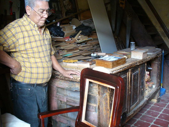 Fancisco Ruiz stand auf dem Schild und die Türe stand offen. Also trat ich ein und stand in einer kleinen Werkstatt voller Holz und Sägemehl. Francisco war gerade dabei, ein Stück Holz zuzusägen, das er für eine Truhe brauchte. "Woher kommen sie?" wollte er wissen. "Aus der Schweiz". "Oh, wie schön, ich hab gestern einen Film von der Schweiz gesehen. Über Hunde, die Schlitten durch den Schnee ziehen. Das war sehr schön." Schon waren wir mitten in einem Gespräch über die Schweiz. Es schien ihn ziemlich beeindruckt zu haben, was er da im Fernsehen gesehen hatte. Ich freute mich, dass jemand auf Anhieb wusste, wo die Schweiz ist. Wir sprachen also eine Weile über Schnee und Kälte. Eine der wichtigsten Fragen dabei ist immer wieder, wie sich Schnee anfühlt. Ist er hart, weich, kann man darauf gehen?