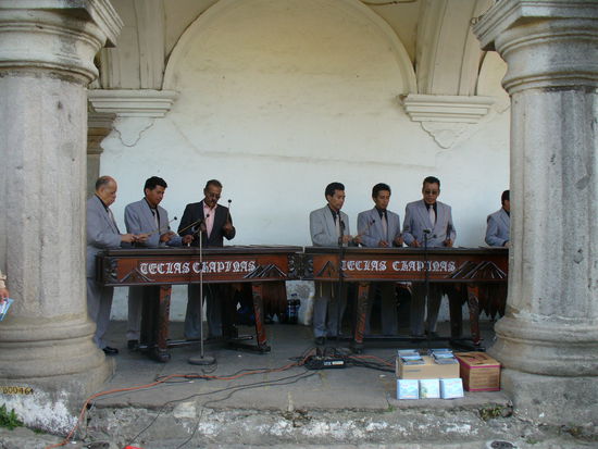 Auf der linken Seite des Platzes, vor dem Regierungsgebäude spielt eine Marimbaband. Noch selten hatte ich die Stadt so voller Musik erlebt. Kurz vorher war ich bei der Gruppe stehen geblieben, hatte kurz zugehört, eine CD gekauft und wurde vor den riesigen Lautsprechern vom Bass fast umgehauen. Rechts vom Park ist das alte Museum. Hier stand früher die erste Druckerpresse Amerikas. Gestern habe ich das Museum besucht, es war aber nur eine Replika ausgestellt. Immerhin wurde hier einst die erste Zeitung Lateinamerikas gedruckt.