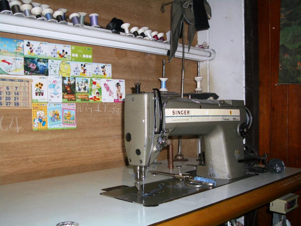 Mit historischen Naehmaschinen werden hier die Anzuege geschneidert, die in den gut aussehenden Laeden unten an der Hauptstrasse an den Mann / die Frau werden.