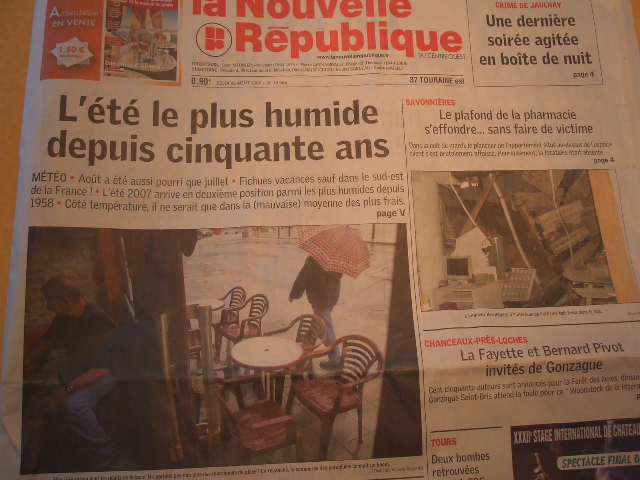 Heimfahrtstag - im strömenden Regen zuckeln wir die Loire entlang über Blois, Orleans, durchqueren die Champagne (trockig, Sonne mit Wolken) und fahren ein Stück durch die Vogesen über Epinal, St. Die, Schirmeck nach Strasbourg, wo wir dann fast schon zu Hause sind.