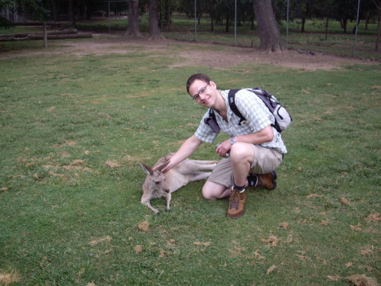 Haben dann auch noch einen gemeinsamen Ausflug gemacht (Marian, Martin, Paul und ich) zum "Lo Pine Koalapark", der bis auf die Busfahrt (oeffentlicher Express-Bus) (fast ne Stunde), total super war. Wir haben zwar nicht direkt wenig bezahlt (totz YHA Ermaessigung 10% - 18$) aber wir konnten Koalas und Kaenguruhs streicheln, die drei anderen haben dann noch gegen Bezahlung ein Koala-Foto (auf dem Arm haben) gemacht. Waren auch sonst noch einige Tiere vorhanden: Alle einheimischen Schlangen, Echsen (teilweise frei umherlaufend) verschiedenste Kaenguruhs, alle einheimischen Voegel, Dingos, Schildkroeten, Krokodile oder Kaimahne (die kleineren halt), Kuecken, Hunde (vor allem fuer die auch von uns bestaunte "Dog-Seep-Show" (Die schwarz-weissen Hunde die die Schafe in Schach halten siehe "ein Schweinchen Namens Babe")).