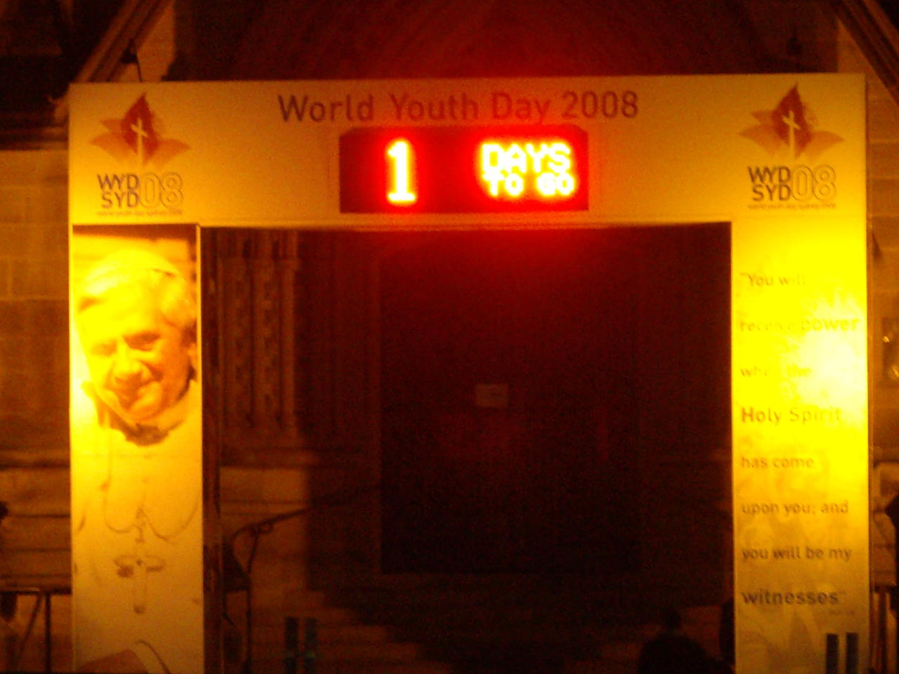 Ja es war natuerlich auch einer der Hoehepunkte als der Papst offiziell in Sydney ankam, durch die in zujubelnde Menschenmasse fuhr und uns alle Herzlich willkommen hies.