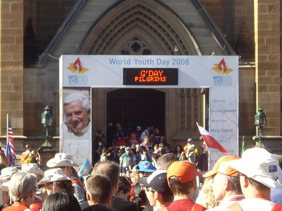 Nur weil man von oben bis unten mit WeltJugendTag Sydney 2008 eingekleidet ist und noch eine Fahne mit persoenlichen Fotos von sich und dem Papst dabei hat, ist man noch lange kein Pilger!