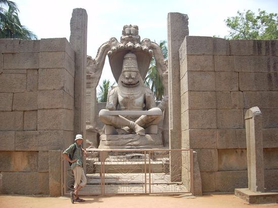 Aus einigen Felsbrocken wurde riesige Figuren geschlagen. Die groeste ca. 6 m hoch. Das folgende Foto zeigt die vierte Inkarnation von Vishnu aus nur einen einzigen Brocken geschlagen.