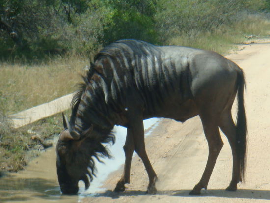 Weiter ging es dann zu den Bourke`s Luck Potholes, wunderbare Ergebnisse einer Millionen Jahre alten Erosion. Diese Löcher entstanden durch zwei verschiedene Flüsse ( Trauer und happiness). Während der Weiterfahrt began es so megamässig zu regnen, dass wir das God`s Window leider nicht sehen konnten. Naja, ich werde es wohl überleben! In der zweiten Nacht übernachteten wir dann in der Gecko Lodge. Diese Lodge befindet sich sozusagen in einem ziemlich dschungelartigen Anwesen. Das heisst im Klartext, es hüpfen überall irgendwelche Viecher herum. Das Schlimmste war der Frosch. Ich sass schreiend und zitternd auf einem Tisch und wartete bis meine starke Schwester dieses kleine eklige Viech irgendwie vertrieb. Ihr könnt euch diese Zitterpartie ja vorstellen,ich von meinem Zimmer in den Speisesaal laufend ( bei Dunkelheit wohlbemerkt), schrecklich! Ich war froh als wir dann am nächsten Morgen bald mal in den Krüger aufbrachen.