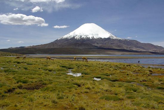 Der aktive Vulkan Guallatiri,mit Rauchfahne