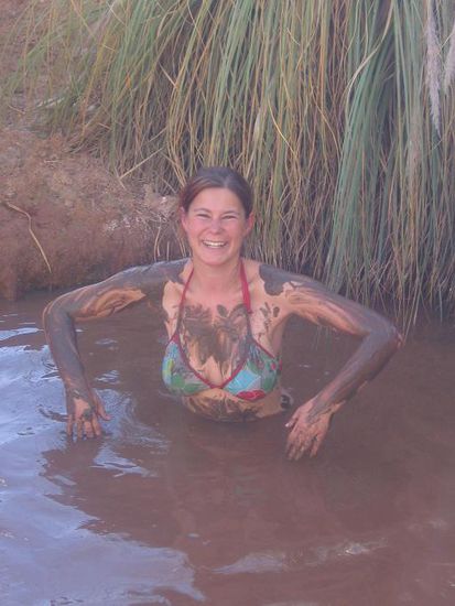 Bevor wir wieder nach Putre zurueckfuhren, durften wir noch das Thermalwasser der Quellen Jurazzi beniessen. Vor allem die Naturbecken mit dem schlammigen Wasser waren ein Hit. Es hat zwar ein wenig gestunken, aber es war ein Spass, sich mit Schlamm einzuschmieren.