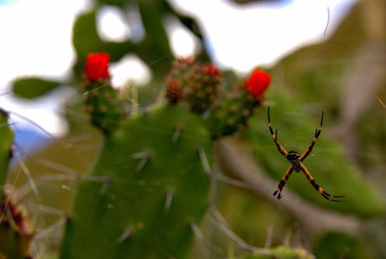 Nach dem 2. Kreuz kann man die Rundwanderung den Grat entlang fortsetzen, immer wieder auf und ab. Das größte Problem dabei besteht darin, den vielen Spinnennetzen auszuweichen, die zwischen den wenigen Bäumen gespannt sind.