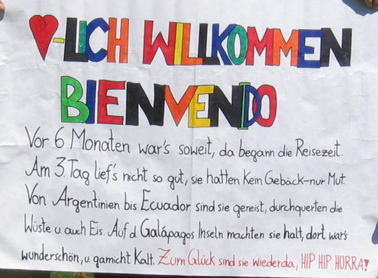 Nach eintägiger Verspätung ist auch Mathias endlich wieder zu Hause! Und bei so einem herzlichen Empfang fühlt man sich gleich wieder wohl in der Heimat
