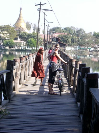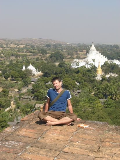 Heute ist unser entspannter Tag. 09;00 uhr haben wir das Boot nach Mingun genommen. Dort hat um 1790 herum ein Koenig versucht sich mit der groessten Pagode der Welt zu verewigen. Leider ist er zu zeitig verstorben und hat nur den groessten Haufen Ziegel der Welt hinterlassen. Trotzdem beeindruckend. Ausserdem gab's noch die groesste funktionierende Glocke der Welt (die sollte eigentlich in die Pagode ... ) und ein paar sehr schoene andere Pagoden zu sehen.