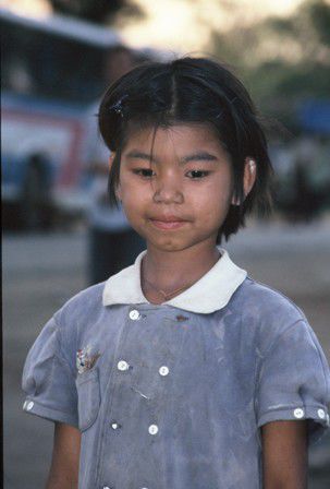 Bei einer Pause in einem Dorf geraten wir in eine Art Umzug...witzig und die Kids sind (wie meistens in Asien) ganz scharf darauf, fotografiert zu werden. Abends ein wunderschoener Sonnenuntergang im Bus zu beobachten...Spaeter versuche ich ein wenig zu schlafen, was mir auch einigermassen gelingt. 5 Uhr morgens Ankunft in Bago..von einem Mann vom Empereor Hotel schon erwartet (ohne mich angemeldet zu haben)...ich denke mir das jeden Morgen ein Bus ankommt und wenn ein Touri dabei ist, kuemmert man sich um ihn...natuerlich auch mit einem gewissen Hintergrund...er verkauft mir das naechste Ticket fuer meine Weiterfahrt. Wir fruehstuecken etwas zusammen. Aufm Dach vom Empereor kann ich ein paar Moenche beim morgendlichen Sammeln ihres Essens und den Sonnenaufgang bewundern. Ich habe noch genuegend Zeit, so dass ich per Rikscha noch zum Shwethalyauy Paya fahre, einem 55m langen liegenden Buddha. Zurueck im Hotel (ich nahm kein Zimmer, aber ich konnte mich da irgendwo hinsetzen) lese ich das Buch "The partner" von Grisham zu Ende. Als der Hunger aufkommt, staerke ich mich nebenan. 9.30 Uhr kommt mein Bus und schon bin ich Richtung Kyaiktyo unterwegs. Erst gibts nur einen "Sitz" auf nem losen Hocker, aber schon 3 Std spaeter, habe ich nen guten Platz vorne. Im Pan Myo Guesthouse nehme ich ein Zimmer fuer 4 USD (was es eigentlich nicht unbedingt wert ist).