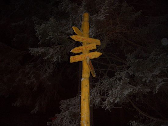 Nach fast zwei weiteren Stunden mit einer Rast in der Ruzohorky Bouda (Blaubeer Baude) kamen wir im Dunkeln in unserer Pension in Velka Upa, völlig erschöpft, an.