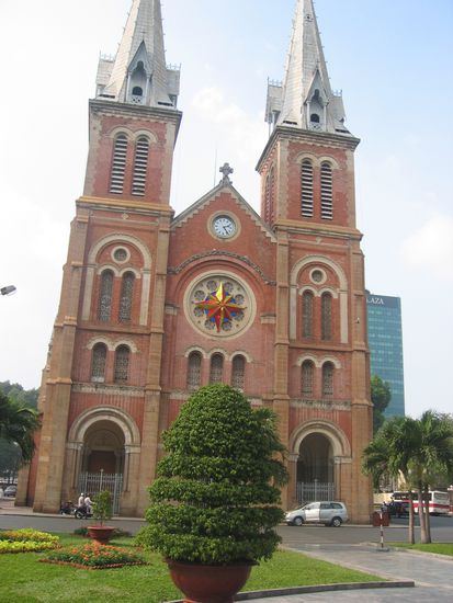 Anschliessend wanderten wir durch die Stadt zur Notre Dame Kirche (ein Relikt der franzoesischen Besetzung), plauderten mit einem Mann aus Sydney und assen in einem schicken In-Lokal zu Mittag. Dabei ernteten wir einige Lacher, als wir dem scheuen Kellner am Ende ein Trinkgeld geben wollten. Als wir spaeter nachfragten, ob Tips jetzt hier ueblich oder verpoent sind, bekamen wir leider nur unterschiedliche Antworten und sind so schlau wie zuvor!!