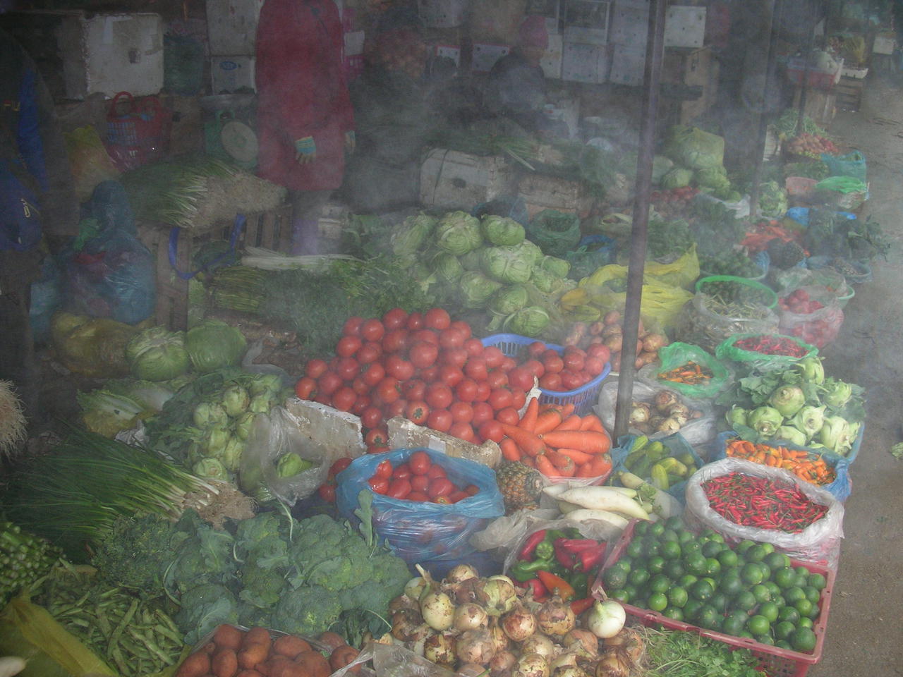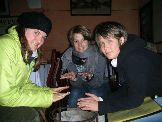 Lange hatten wir heute in den Betten gelegen, die - nicht wie alles andere - warm und gemuetlich waren. Schliesslich quaelten wir uns aus den Federn und versuchten, unser gesamtes Hab und Gut, das stetig waechst (zu viele Maerkte!), in unsere Rucksaecke zu verpacken. Nach dem Fruechstueck zurueck im Zimmer zuendeten wir beinahe das Hotel an: Unser Heater hat wohl etwas arg gearbeitet, denn das Plastikende des Steckers war in der Steckdose geschmolzen. Gluecklicherweise entdeckte Chris gerade noch rechtzeitig den aufsteigenden Rauch und konnte so ein groesseres Unglueck verhindern.