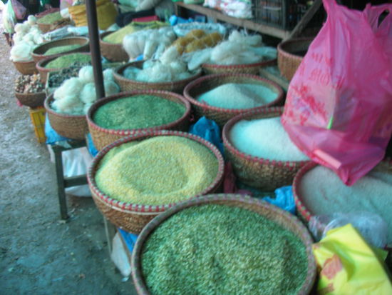 Unsere Nase fuehrte uns, wie so oft schon, auf den Markt. Vielleicht gibt's was Neues zu kaufen. Wir blieben beim Alten und deckten uns mit Halstuechern und Schmuck ein: Schliesslich wollen wir den Daheimgebliebenen auch etwas mitbringen.