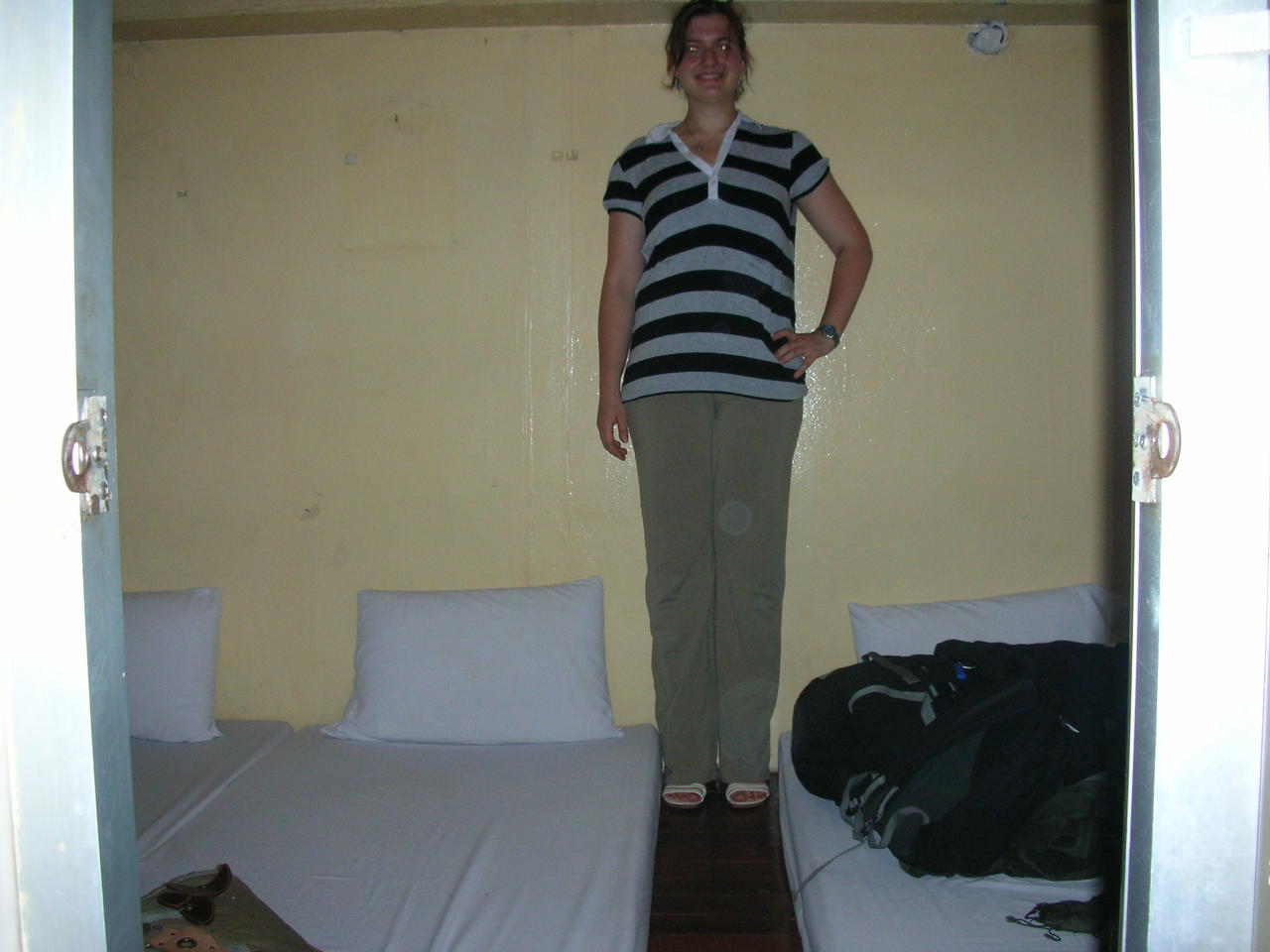 Eng war nur der Vorname. Unsere Rucksaeck hatten knapp neben den 3 auf den Boden gelegten Matratzen Platz. Wollte man etwas aus unseren Monstern herausnehmen, musste man zwangsweise die Matratzen in Beschlag nehemen. Schwitzend und keuchend beschlossen wir, am naechsten Tag so schnell wie moeglich eine andere Unterkunft zu suchen, fuer den ersten Abend war es aber ausgezeichnet, dieses Mauseloch gefunden zu haben.
