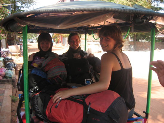 Nach einem feinen Fruehstueck auf der Veranda des Hotels nahmen wir uns eine Motorbikerikscha zum Flughafen... viel Platz war nicht mehr vorhanden . Im Schneckentempo tuckerten wir durch die Strassen Siem Reaps und genossen die letzten Augeblicke im wehenden Fahrtwind.