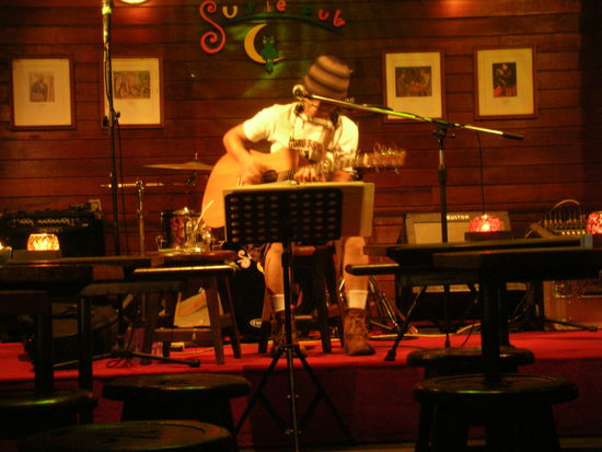 Am Abend sassen wir dann wieder in derselben Bar wie gestern und lauschten der heiseren Stimme und den Guitarrenklaengen desselben Typen wie gestern. Bald schon stimmten wir mit ein - zur grossen Freude des Saengers, der bald schon unsere Stimmen lobpreiste... Schleimer!