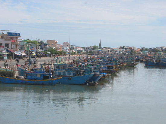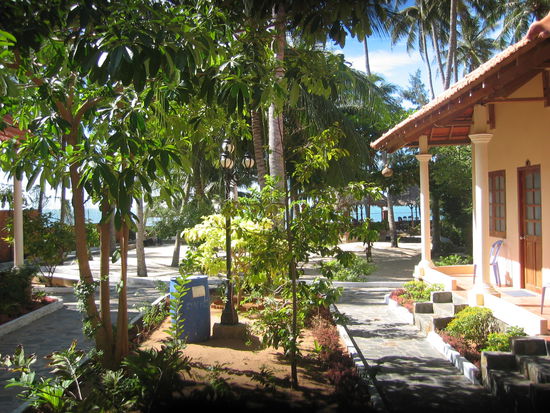 Mui Ne praesentierte sich im Gegensatz zu Phan Thiet schon wesentlich touristischer - ein Strandhotel reiht sich ans naechste, alle sprechen mehr oder weniger gut Englisch und die Preise sind auch etwas hoeher. Wir liessen uns schliesslich in einem kleinen Strandbungalow inmitten von Palmen und kleinen (wenn auch kuenstlichen) Baechen nieder.