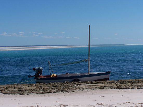 Das Wasser so seicht, man hätte nach Bazaruto auch laufen können, aber so war´s natürlich sehr bequem !