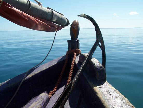 Morgens fuhr E. uns zur Ausgangsstation für unser Bazaruto-Abenteuer: Zusammen mit anderen fanden wir uns ein im Hauptquartier der (südafrikanischen) Firma, die die Schnorchelausflüge nach Bazaruto organisierte. Jeder bekam Flossen, Taucherbrille und Schnorchel verpasst und es ging los an den Strand, wo wir eine Dhau bestiegen und lossegelten. Es war wunderschön !