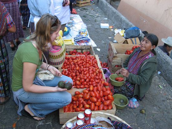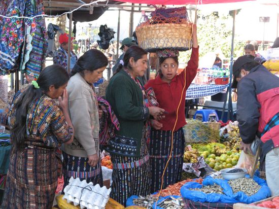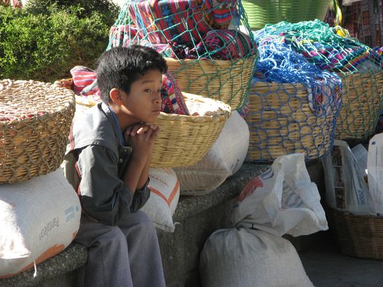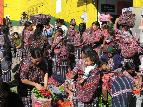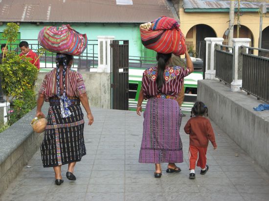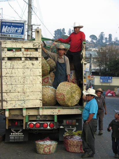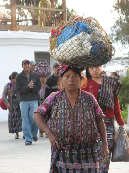 In Antigua zurueck, rafften wir unsere Sachen zusammen, um die erste Fahrt in den "Chicken Bussen" anzugehen. Geplant war zu diesem Zeitpunkt ueber Chimaltenango und Panachel nach Solola zu fahren. In Chimaltenango angekommen, stiegen wir unerwartet in einen Direktbus nach Solola und quetschten uns mitsamt unseren Ruecksaecken zwischen lauter Indigenas in ihren traditionellen Trachten. Gluecklicherweise wurde es nach einer Weile etwas leerer, so dass wir unseren Stehplatz im Gang gegen einen Sitzplatz auf der engen Bank eintauschen konnten. Dieser war besonders wertvoll, da die Busse hier mit Hoechstgeschwindigkeit auf engstem Raum die Berge hoch und runter brettern. Nun hatten wir endlich auch die Moeglichkeit den traumhaften Ausblick auf die umliegenden Berge und Doerfer bzw. die uns umgebenden Wolken zu geniessen.