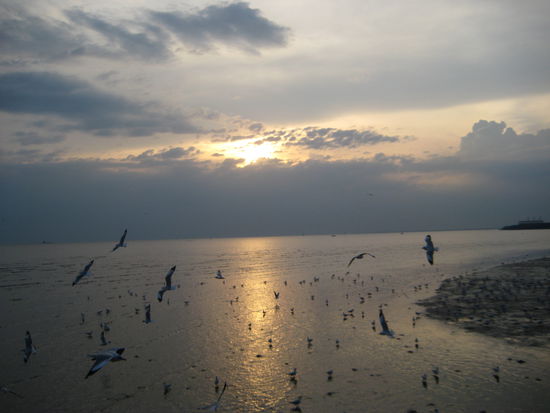 und diese Bilder entstanden dann so mal in der Umgebung von Samut Prakhan ein See mit Zig Moewen die abends von den Thais mit Nuessen gefuettert werden... Achtung, Deckung... Dahinter ein grosses Gebauede gehoert wohl dem Militaer oder Marine oder weiss der Kuckuck wem jedenfalls gabs lecker essen und da entstanden dann diese Bilder