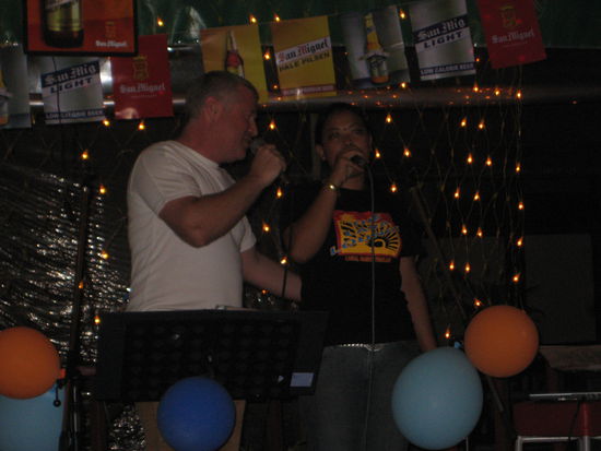 JonJon (Michaels Bruder) und Vater (der wohl Pfarrer ist ?)sind auch aufgetaucht, dann die tolle Band wieder mit Musik aus dem Laptop und ich habe diesmal zwar wieder den 2. Platz beim Beer Drinking Contest gewonnen aber eh diesmal gab es einen San Miguel Beer Krug, ... ha ha ha. Da lohnt sich das mitmachen alle mal... oder ?????