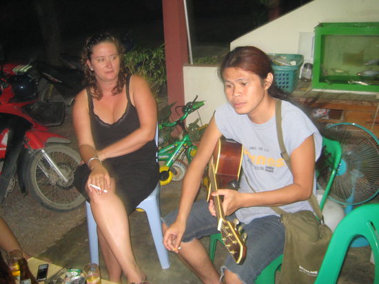 Back to Samui - Treffen mit Yvonne und Thomas: 12 h mit Filipions am Haus sitzen