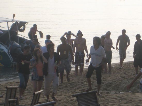 Irgendwie war weder Ich noch Andrew muede und gegen 4 Uhr macht der Morningmarket am Maenam auf. Nach Uno Zocken hatte ich dann die brennende Idee Go7 und Bier zu kaufen und die Freaks beobachten die von der Full Moon Party von Koh Phangan zurueckkommen... Gesagt, getan.
