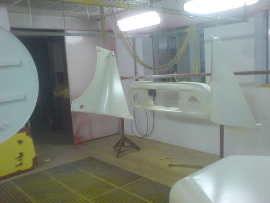 Die Anbauteile haben wir nach stundenlangem entrosten in der Kabine lackiert.