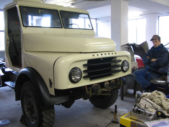 Durch Carls und meine gemeinsame Leidenschaft zu motorbetriebenen Fahrzeugen, mussten wir zunächst einmal über die für uns wichtigtigste Frage entscheiden, nämlich mit welchem Fahrzeug wir unsere Reise antreten wollen. Wir sind schnell auf einen stilvollen charakterstarken praktischen Lkw gestoßen, der die meisten unsere Ansprüche erfüllt. Der Lkw sollte geländetauglich, stabil und einzigartig in seiner Form sein. Damit stand fest, dass es ein Hanomag AL 28 sein sollte. Nachdem wir uns einige Fahrzeuge angeschaut hatten, kauften wir dann am 01.12.07 unseren Hanomag.
