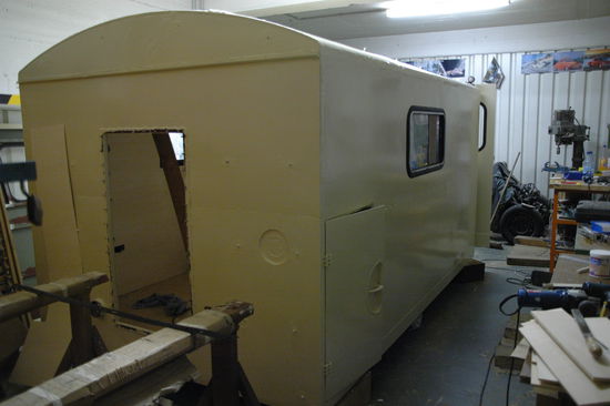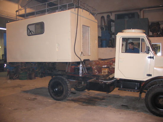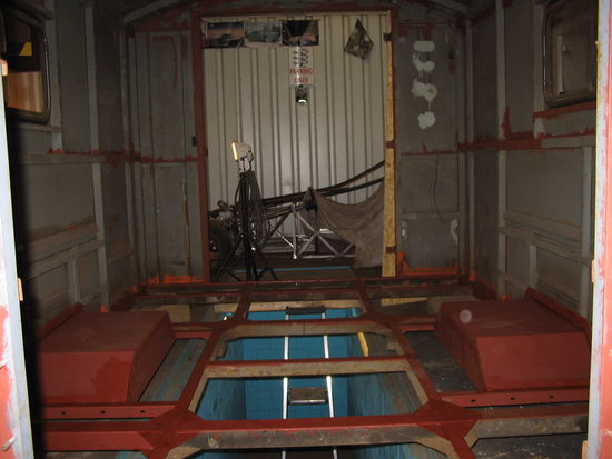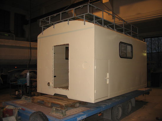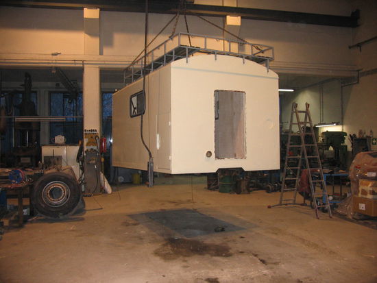 Den Aufbau haben wir vom Lkw zur besseren Bearbeitung gehoben.