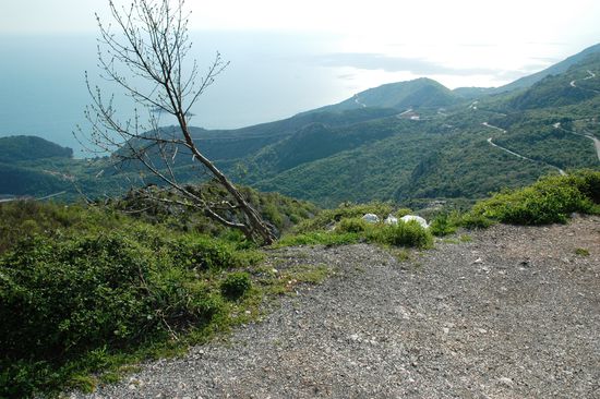Die Strecke bestand aus vielen Bergen, die der Hano bewältigen musste. Das Komische war, dass der Weg laut Kartenmaterial etwa 50 Kilometer weit sein sollte. Die tatsächliche Strecke, die wir gefahren sind, war dreimal so weit. Es ging permanent Berg auf und Berg ab. Rechts von uns war direkt der Berg und Gestein und links von uns der Abhang. Sollte wir von der Straße abkommen, würden wir mindestens 200 Meter tief fallen. Dazu war die Strecke super kurvenreich und im schlechten Zustand, aber das waren wir ja mittlerweile gewohnt. Wir fuhren bis zur Grenze zum Kosovo direkt durch.