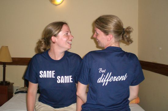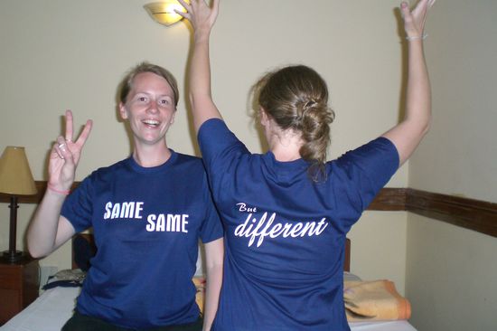 Same Same But Different wurde zum Witz unserer Fahrt durchs Land und dann mussten wir natuerlich diese T-Shirts kaufen, als wir sie in Hoi An sahen!!!