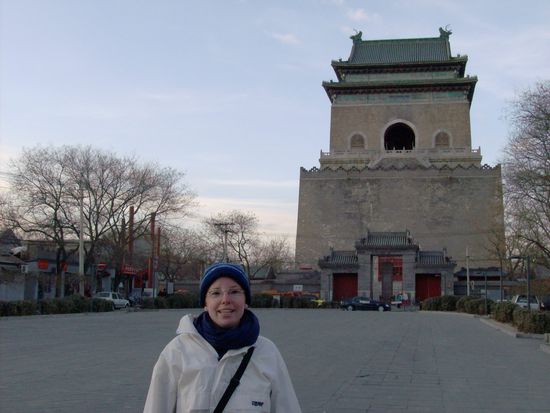 Anschliessend hetzten wir noch schnell zu den Hutongs Pekings. Die einzigen kleinen Haeuser der Stadt, die noch nicht durch Hochhaeuser ersetzt wurden. Wir schafften es tatsaechlich noch im Hellen und konnten so noch unbekuemmert durch die kleinen Gassen schlendern. In Mitten der Hutongs stehen zwei Tuerme. Der Bell Tower und der Drum Tower.