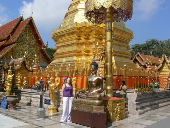 Wir haben eben noch im Wat Doi Suthep gebetet, dass wir ankommen. Der Tempel liegt 1200 m hoch und ist wunderbar.